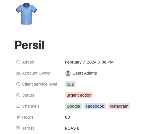This board helps you stay on top of all your client work by providing a single overview for all your tasks, background information and notes.